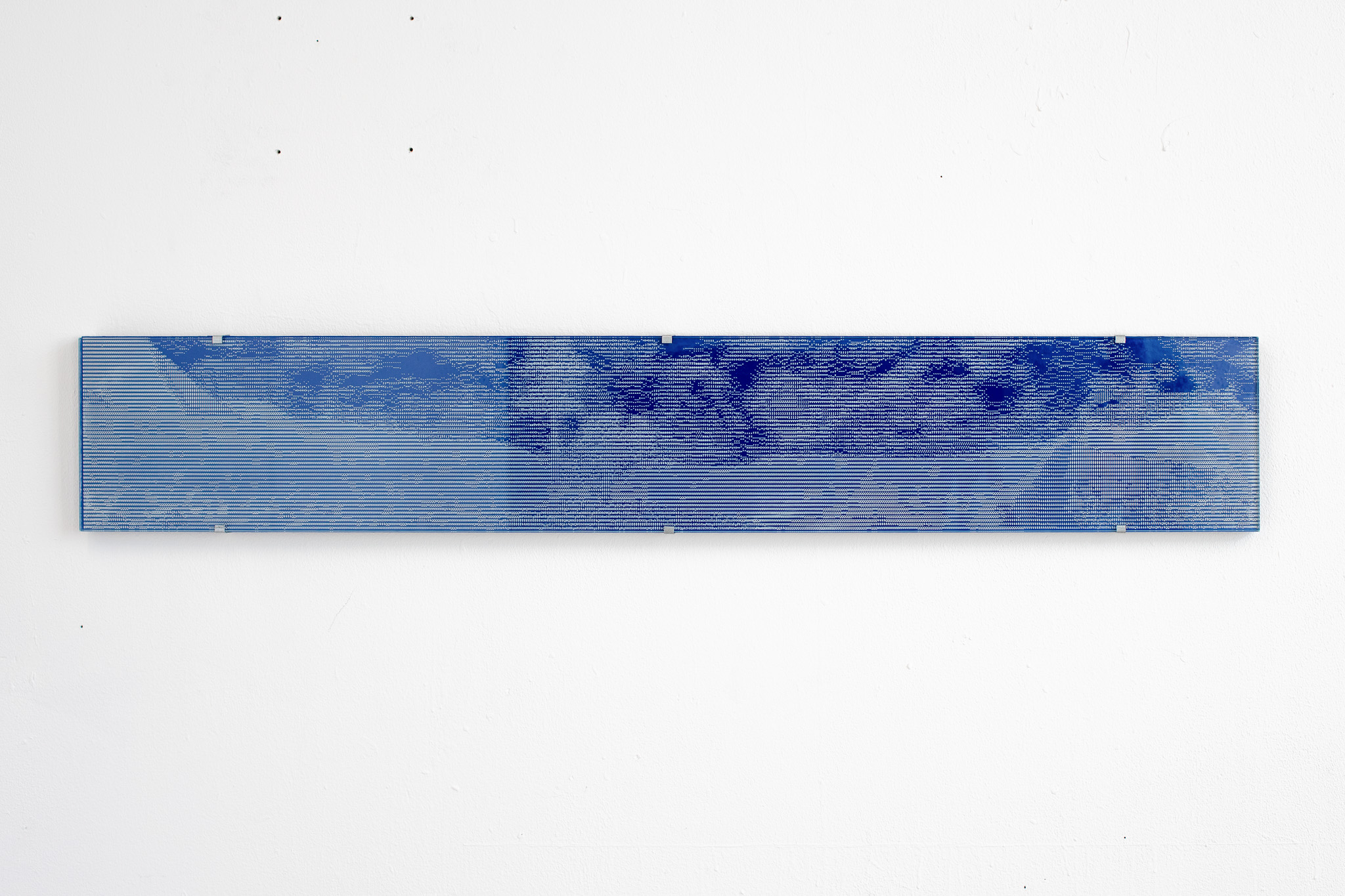 The work ASCII Archaeology translates the last fragments of the world into ASCII code and thus into a compressed form. The image is first converted to grayscale, then each point is assigned an ASCII character based on its brightness. Through the transfer to analogue material, specifically glass, one of the most enduring materials available, the compression gains a longevity that is not available in digital storage media.